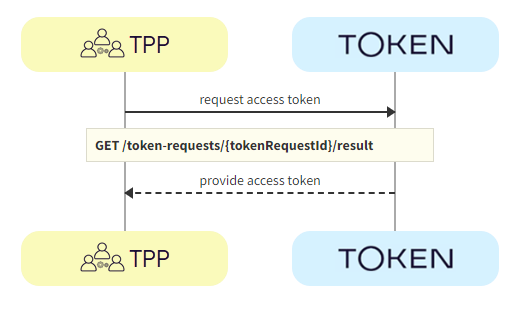 The TPP calls GET /token-requests/{tokenRequestId}/result to obtain the access token.