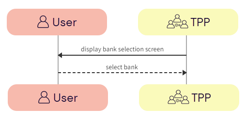 b. User -> TPP - The user selects the bank.