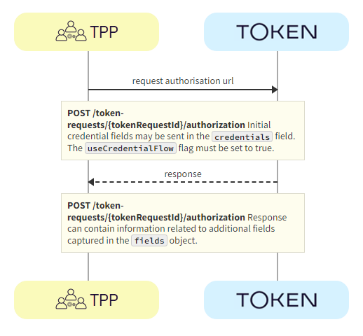 a. TPP -> Token.io - The TPP sends additional credentials using the POST /token-requests/{tokenRequestId}/authorization call.