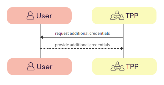 b. User -> TPP - The user provides additional credentials to the TPP.