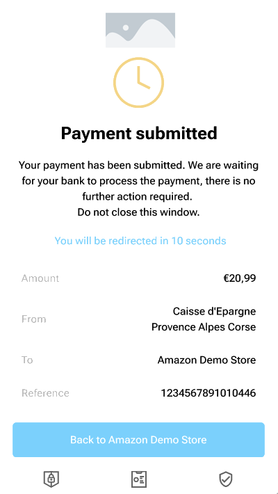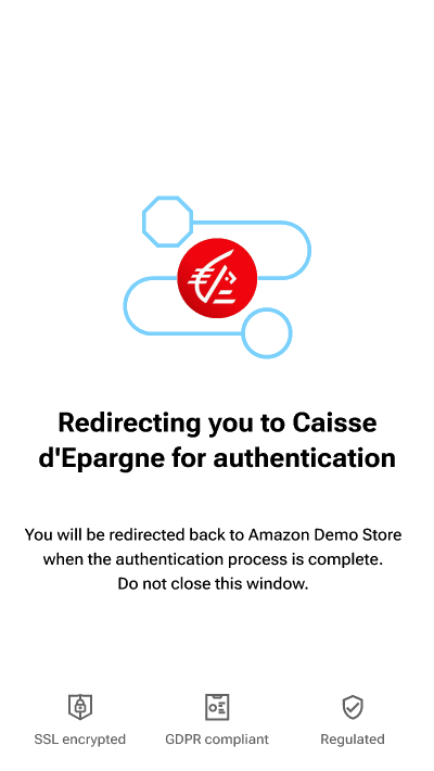 This example shows what happens when a returning mobile user initiates Pay by Bank with a bank in the EU.