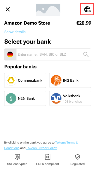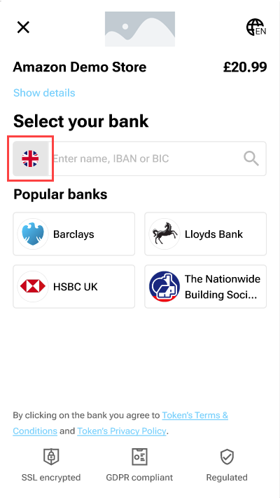 Before the Token.io Hosted Pages redirect to the bank for authorization, the user's IBAN is validated. Until IBAN validation succeeds, Hosted Pages redirect to the selected bank is paused.