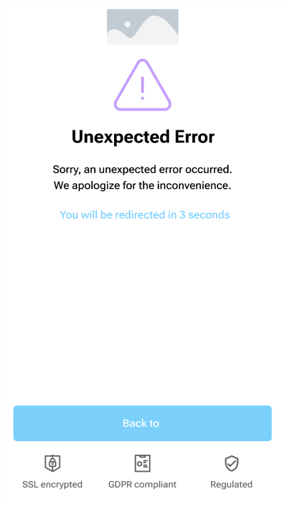 This screen is displayed when the user experiences an expired request, e.g., SESSION_EXPIRED. It's displayed when the requestId or paymentId expires, usually within 20 minutes of the requestId or paymentId being generated.