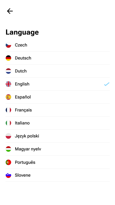 The user can change the language in the HP by clicking the Language button in the top right corner of the screen and then selecting the required language from the list.