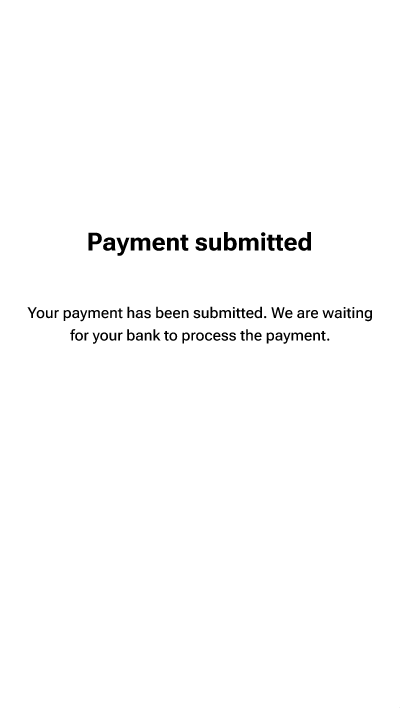 This user journey also shows the status screen (screen 9) where the current status of the transaction is displayed to the user; in this example Payment submitted.
