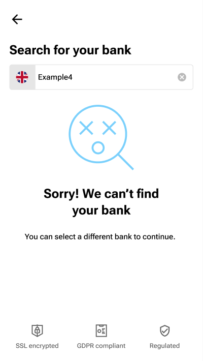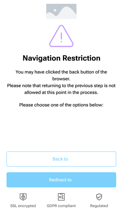 This screen is displayed in a redirect integration if the browser back button is clicked during authentication and consent after redirecting to the bank.