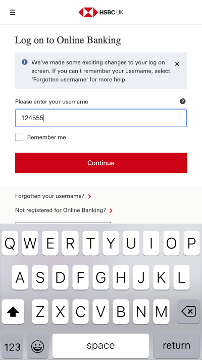 This example shows what happens when a returning mobile user cancels a transaction with a UK bank. The user can cancel a transaction at any point in the user journey by clicking the Cancel button in the top left hand corner. The user will then be asked to continue with, or rescind, the cancelation.