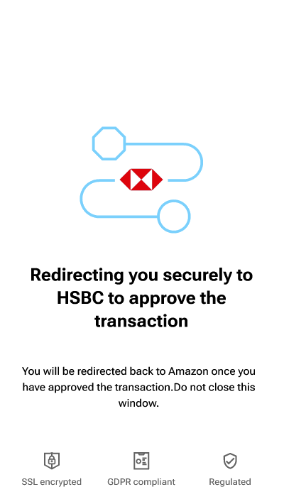 This example shows what happens when a new mobile user initiates Pay by Bank with a UK bank, with redirect integration implemented.