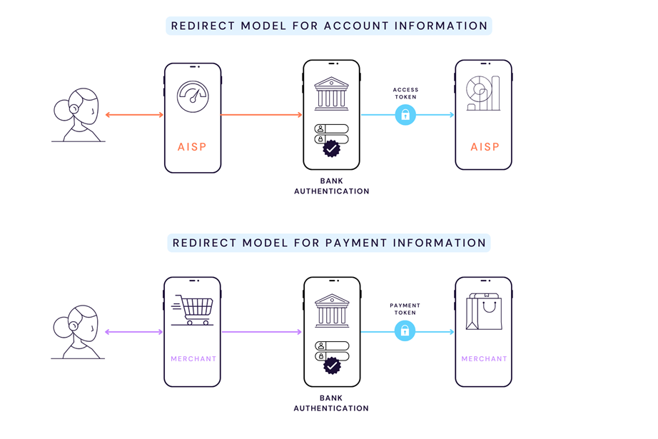 The advantage in the redirect model resides in the Bank/ASPSP remaining in full control of account holder authentication.