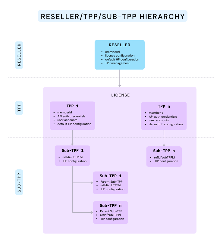 Throughout the Developer Documentation we use the terms reseller, TPP and sub-TPP. The following table describes these entities.