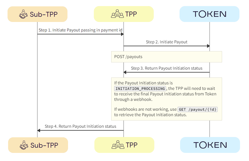 - Token.io -> TPP - Token.io returns the payout initiation status to the TPP.