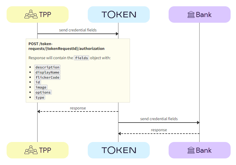 Using the POST /token-requests/{tokenRequestId}/authorization call, the TPP submits the additional credentials to the bank via Token.io.