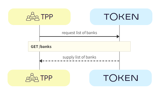 a. TPP -> Token.io - The TPP requests the list of banks from Token.io.