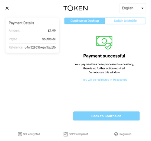 - Embedded (modal) integration - seamlessly integrates Token.io's HP functionality into your website by creating a Pay by Bank button for your checkout page, which then opens the HP in a modal window.