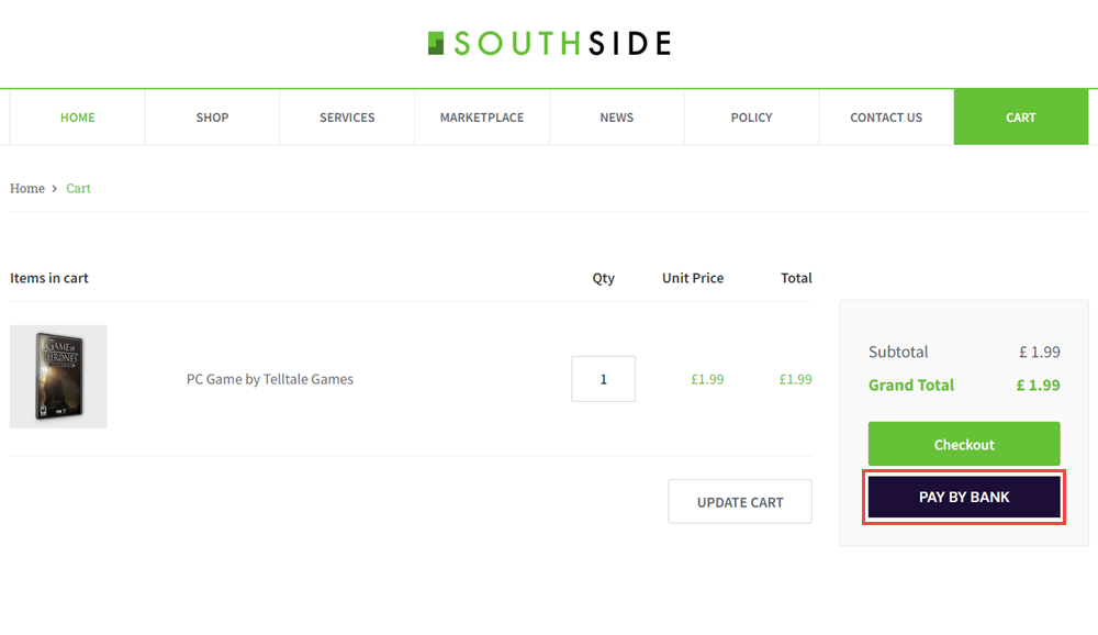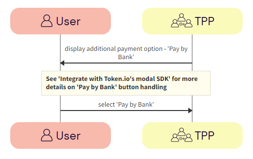 a. TPP -> User - The TPP displays the 'Pay by Bank' button on the payment page of their website.