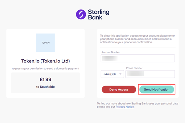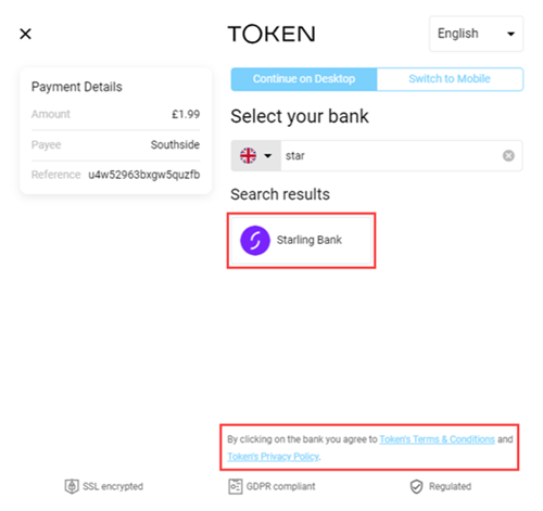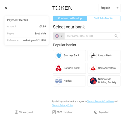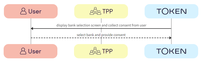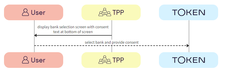 Token.io asks the user to select the bank they want to make the payment through. By selecting the bank, the user provides consent to Token.io.
