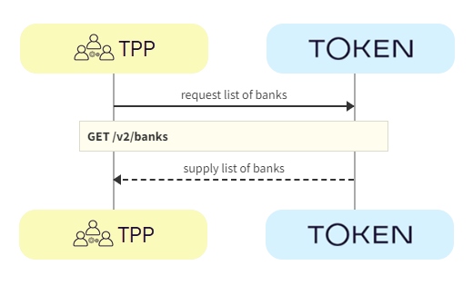a. TPP -> Token.io - The TPP requests the list of banks from Token.io.