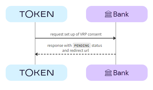 a. Token.io -> Bank - Token.io requests permission to set up the VRP consent with the user's bank.